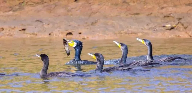 記者了解到,普通鸕鶿非常喜歡集群捕魚,它們捕魚時會分工協作,排成隊形,一部份負責驅趕魚群,另一部份負責捕食。普通鸕鶿食量驚人,一斤重的魚可以一口吞掉。一只普通鸕鶿一天可吃掉10至15斤魚。