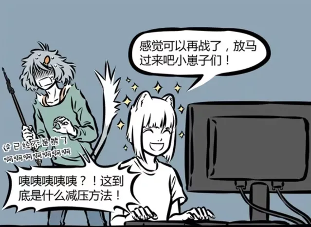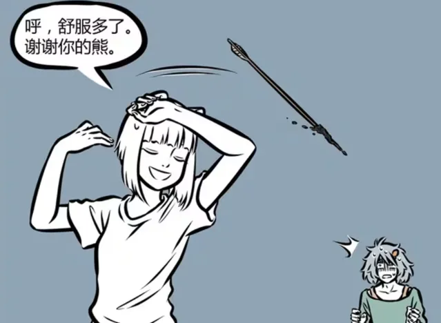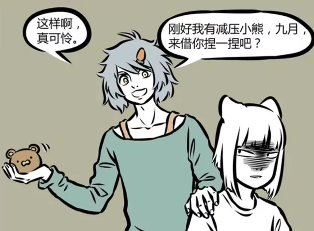 【非人哉】漫畫版中,神仙精怪要上班,也會有壓力。九月雖然沒有什麽拼勁,但事實面對客戶的時候,偶爾也會壓力巨大。這時候就需要解壓,那麽她會如何解壓?哮天提供解壓小熊,九月憑空召喚弓箭,用箭射穿解壓小熊,隨後還劈柴燒火,將解壓小熊燒掉。這麽一來,九月的壓力是解除了,哮天就emo了。