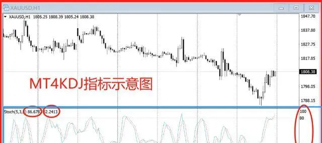 MT4軟體上沒有KDJ指標,只有KD指標,名字是Stochastic Oscillator,是「KDJ」的學名,轉譯過來就是「隨機震蕩指標」。