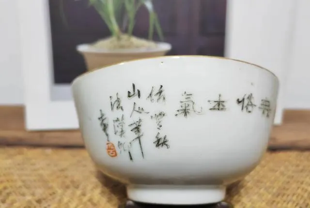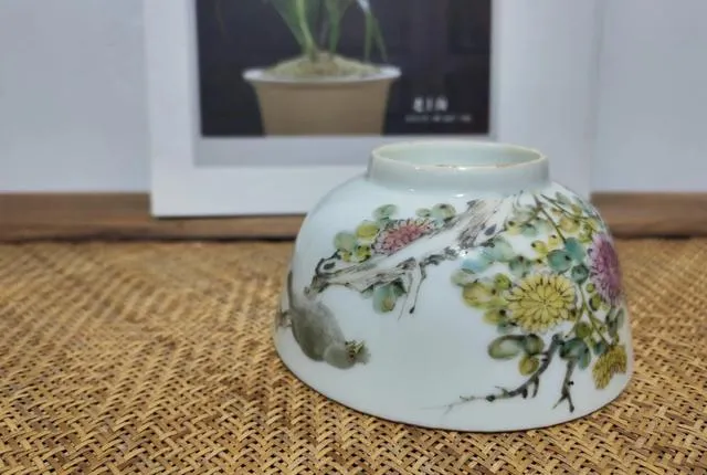 這件晚清淺絳「八哥菊花圖」小碗,繪畫精美,書法古拙,文氣十足,落「漢卿」款識,非常稀有,值得珍藏!