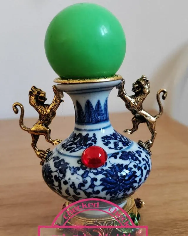 其次,這件作品將青花瓷器與琉璃工藝相結合,體現了中國傳統文化的包容性和創新性。青花瓷器作為中國傳統工藝品之一,其獨特的藝術風格和制作工藝深受人們喜愛。而琉璃工藝則以其色彩斑斕、質地晶瑩而著稱於世。將這兩種傳統工藝相結合,不僅創造出了獨特的藝術效果,也體現了中國傳統文化的創新精神。