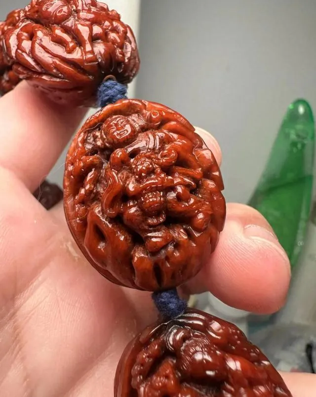 雖然桃核變色慢,但它的美觀性和價效比卻是非常高的。一串紅潤的桃核手串,不僅能彰顯出玩家的品味和耐心,還能成為文玩圈中的一道亮麗風景線。而且,桃核的價格相對親民,讓更多的文玩愛好者能夠體驗到盤玩的樂趣。