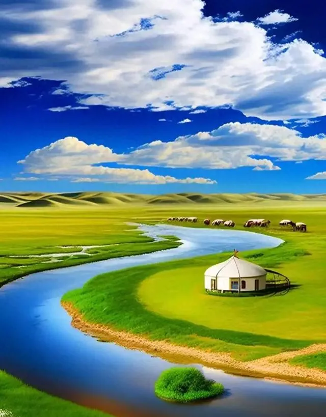 藍天白雲,遼闊草原,