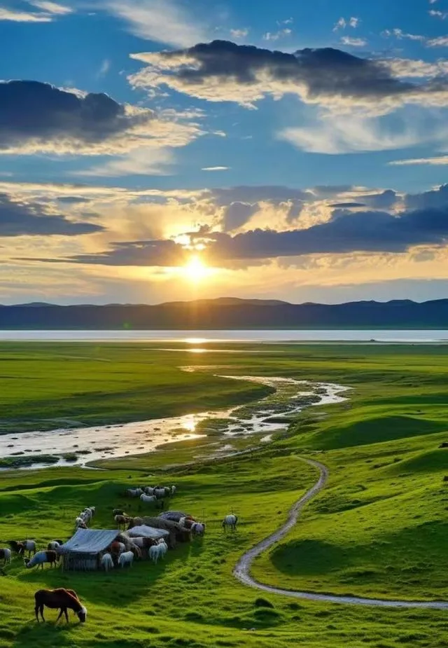 自然環境。 呼倫貝爾草原地域遼闊,地勢東高西低,由東向西呈規律性分布,地跨森林草原、草甸草原和幹旱草原三個地帶。3000多條縱橫交錯的河流,500多個星羅棋布的湖泊,一直延伸至松濤激蕩的大興安嶺。多年生草本植物是組成草原植物群落的基本生態性特征,草原植物資源豐富。是中國當今保存完好的草原(綠色原生態),水草豐美,有多種營養豐富的牧草,素有牧草王國之稱。