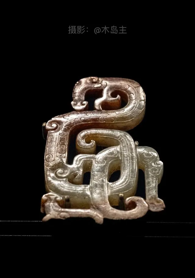 接下來,我們不得不提到「交龍紋玉佩」。這件玉佩同樣來自戰國時期,雕刻著兩條相交的龍,形成了一個動感十足的圖案。龍在中國文化中被視為神聖、生生不息的象征,這種交龍設計的玉佩,寓意著一種和諧與共生的美好願望。如今,這件玉佩在社交媒體上頻頻出現,成為了時尚達人們爭相展示的「寶貝」。