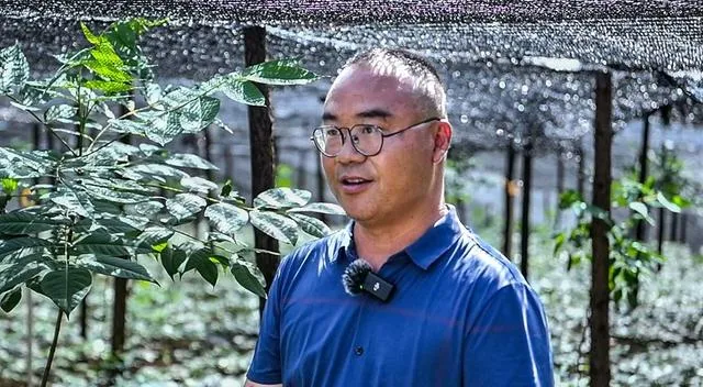興仁市黃柏林下套種三七規範化種植基地負責人尹才富說:「這個基地是去年12月30日開始施工,每天用工量大的時候有60到70人,目前,透過我們精心地管護,感覺長勢還可以。」