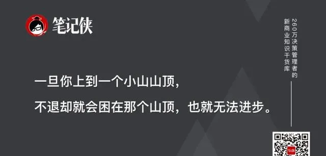 創新,也是同樣的道理。 一旦你上到一個小山山頂,不退卻就會困在那個山頂,也就無法進步。