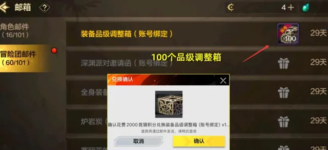 我們可以發現,能拿2000積分,兌換100個品級調整箱(帳號繫結)!