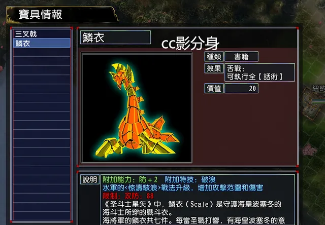 鱗衣:增加驚濤駭浪的範圍與傷害。