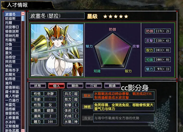 ding級攻防兼備的技能,不怕俘虜,不怕戰死,不怕計策,還能自動恢復士氣與體力,使得波塞冬具備持續作戰的實力。