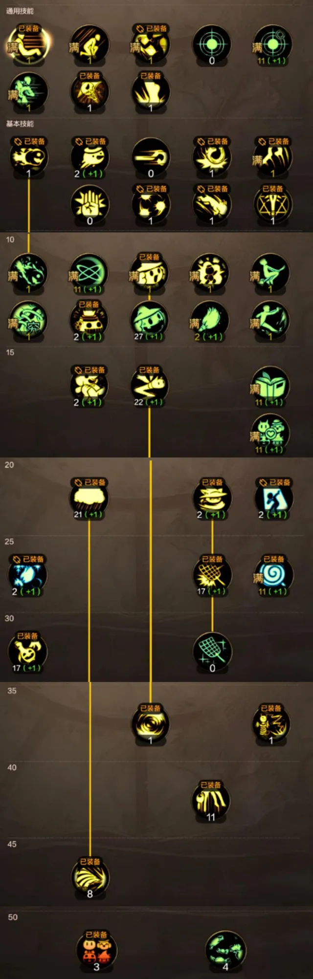 其實就是上述出現過的技能都點滿,然後被動和覺醒點滿,其他都可點一級,點一個小草人。