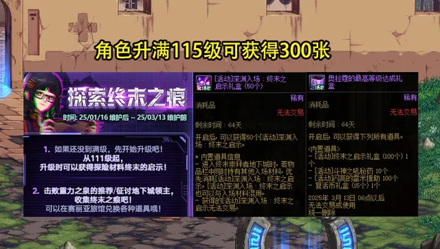 終末之啟示是115版本深淵的入場材料,由於115版本的核心玩法是刷深淵,因此需求量非常高。 不過大家別擔心,在新春版本加入的16個活動中,就有7個可以獲得深淵票的活動。那麽都有哪些途徑?怎麽樣才能獲得呢?