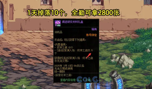 除此之外,在推薦地下城中, 玩家透過掉落的痕跡研究材料禮盒,也可以獲得5張深淵票,一天最多掉落10次,活動持續56天,全勤可獲得2800張 。
