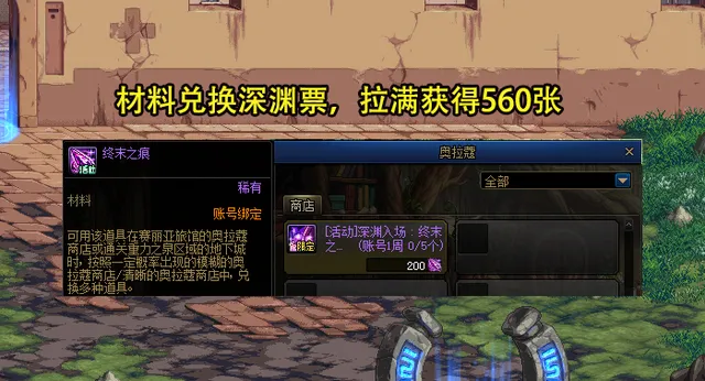 當然在終末之痕的商店中, 也可以兌換80張深淵票,一周可兌換560張 !加上升級活動給的,推薦地下城掉落禮盒給的,總計可獲得3660張深淵票。
