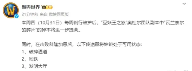 以上就是【魔獸世界】國服的最新動態。玩家們,你們對這些更新有什麽看法呢?歡迎在評論區留言討論。同時,別忘了關註我們,獲取更多【魔獸世界】的最新資訊和攻略,讓你的冒險之旅更加精彩!