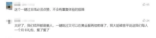 為了確保每位玩家都能享受到輕松愉快的遊戲體驗,官方推出了一系列減負措施。例如,建立新角色只需10分鐘就能達到當天最高等級,主線劇情可以一鍵跳過,奇遇和說英雄等任務也可以免做,這樣玩家能迅速進入核心玩法,享受那些真正有趣的內容。