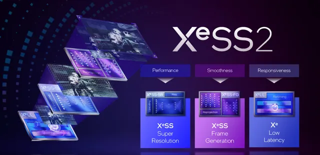 除此之外,超分技術也從「XeSS」升級到「XeSS 2」。而且除了傳統的超分之外,還新增了 NVIDIA「DLSS 3」和 AMD「FSR 3」等實作的幀生成技術「XeSS Frame Generation」(XeSS-FG)、低延遲技術「Xe Low Latency」(XeLL)等功能。