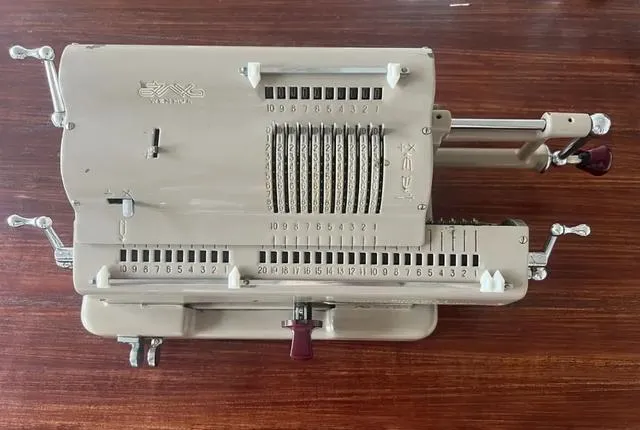 手搖式電腦,原理和跳繩計數器差不多。70年代天津仿制日本的虎牌電腦。
