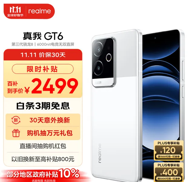 自從雙十一活動到來,很多手機都開始降價,高端旗艦跳水很多,幾百上千是隨隨便便,不過競爭力最激烈的,應該還是中端領域,各家子品牌大招頻出,之前火熱的「四大天王」,如今都徹底老實了,那麽今天我們來聊聊,realme的一款產品,這就是真我GT6,價格也是相當良心,2200元左右能買到,價效比是非常的高,如果你有購機需求,不妨考慮一下它哦。