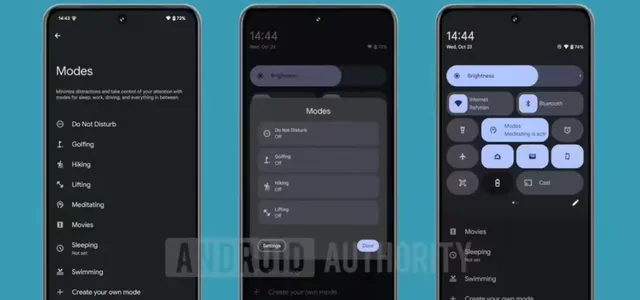 同時,谷歌對點選快速設定圖示時出現的使用者介面進行了調整,更改為以單列、垂直捲動的列表顯示。快速設定圖表將顯示使用者啟用的模式圖示,如果啟用多個模式,則會切換為顯示活動模式的數量。