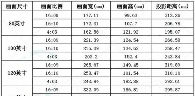 又或者,當你可放置投影機的桌子距離墻面的距離有355cm,那麽買一個投射比1.2:1、機身深度28cm的投影機,預留間距8cm,那麽投影機能投射出來的最大畫面寬度=(355--28-8)/1.2=265.8cm,對應為120吋。