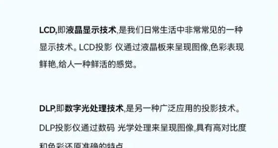 除了 光源 ,影響畫面效果的另一個根本因素,就是 投影機的顯示技術 。目前投影機市場上有兩種主流顯示技術,一種是LCD,一種是DLP。