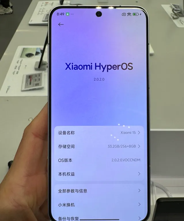 小米15配備6.36英寸OLED直屏,采用客製M9發光材料,手動最高亮度800nit,支持1-120Hz LTPO和全亮度類DC調光,配備超音波指紋辨識和小米龍晶玻璃1.0。