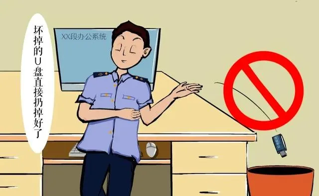常見錯誤情形:一是故障電腦擅自找外部單位維修處理;二是報廢和閑置的電腦、U槽等隨意丟棄。