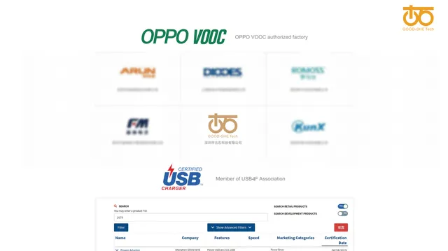 古石獲得OPPO VOOC閃充技術授權,並且是USB-IF協會的註冊會員。