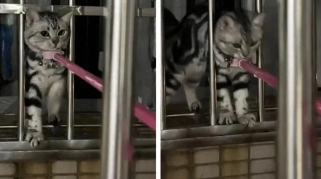 更驚險的是,這只貓還特別喜歡往窗台上跑,好幾次都差點跳出去。幸好,這位朋友眼疾手快,每次都能及時發現,然後用曬衣桿頂住它,這才沒讓悲劇發生。可這一舉動啊,卻被貓主人給誤會了,以為他是在虐貓,還把他給罵了一頓。