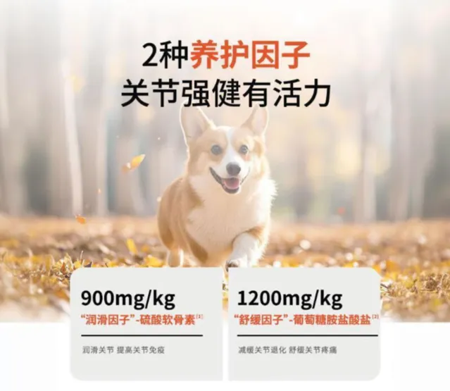 4️⃣關節養護因子: 富含硫酸軟骨素和葡萄糖胺,有效潤滑關節並減緩退化。這種配方適合不同年齡段的狗狗,關註每一個重要生命周期,提升其靈活性與活動能力。