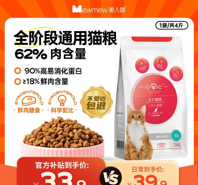 推薦入手:美人喵小安心全價鮮肉貓糧2kg
