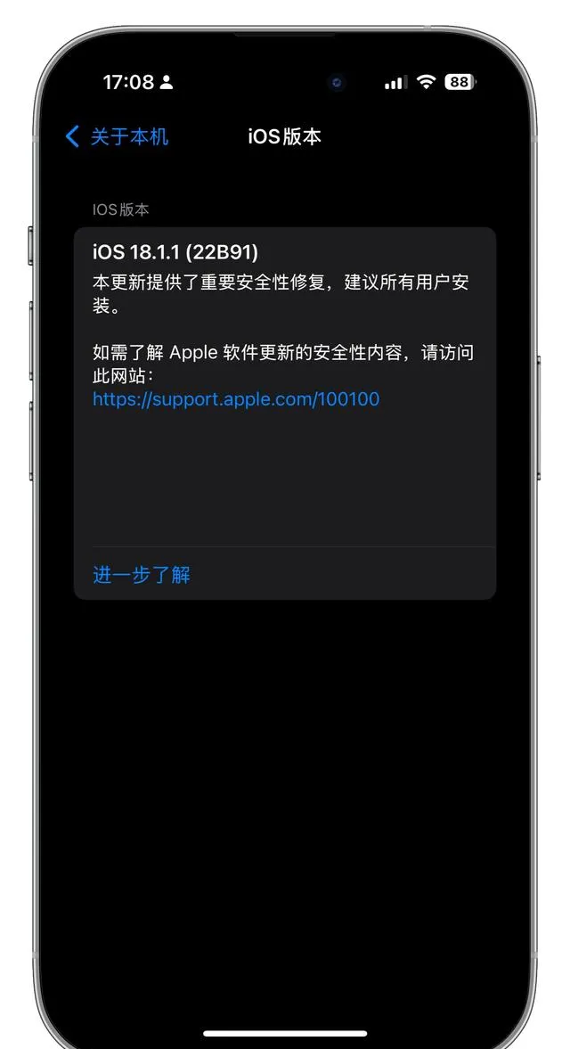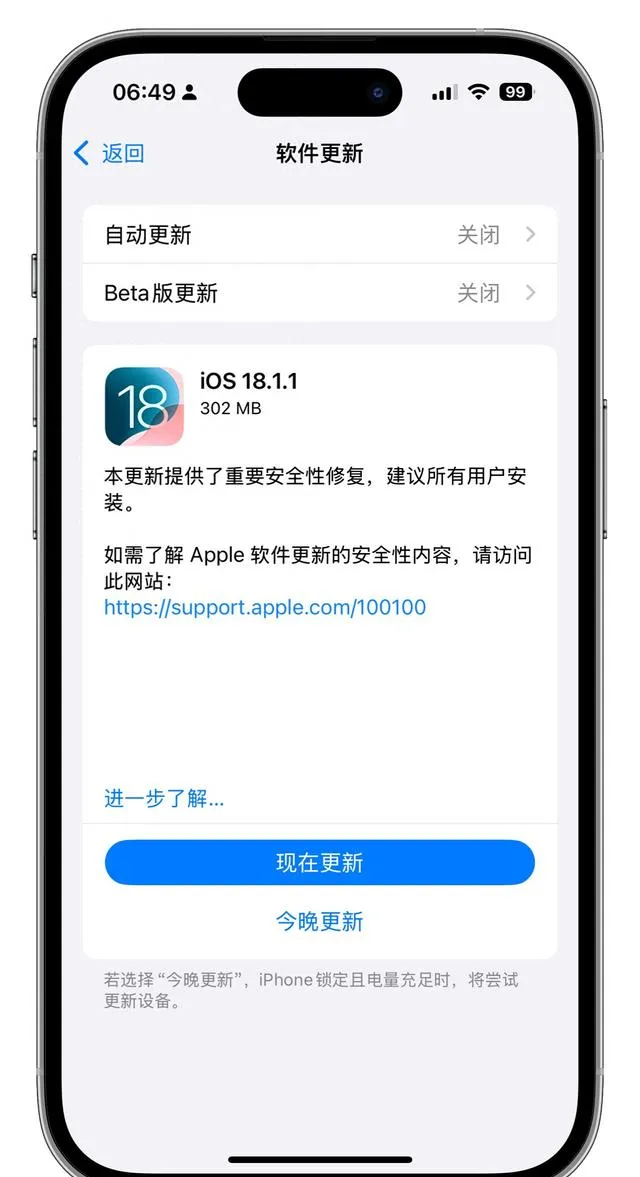 如果您在當前系統版本下遇到了諸如訊號不穩定、發熱嚴重或者其他影響使用體驗的問題,並且對新功能有一定的需求,那麽可以嘗試升級到 iOS 18.1.1。不過需要註意的是,由於老機型的硬體配置相對較低,升級後可能會面臨一定程度的效能下降、套用相容性問題或者續航縮短等風險,因此在升級之前最好備份好重要數據,以便在出現問題時能夠及時恢復。