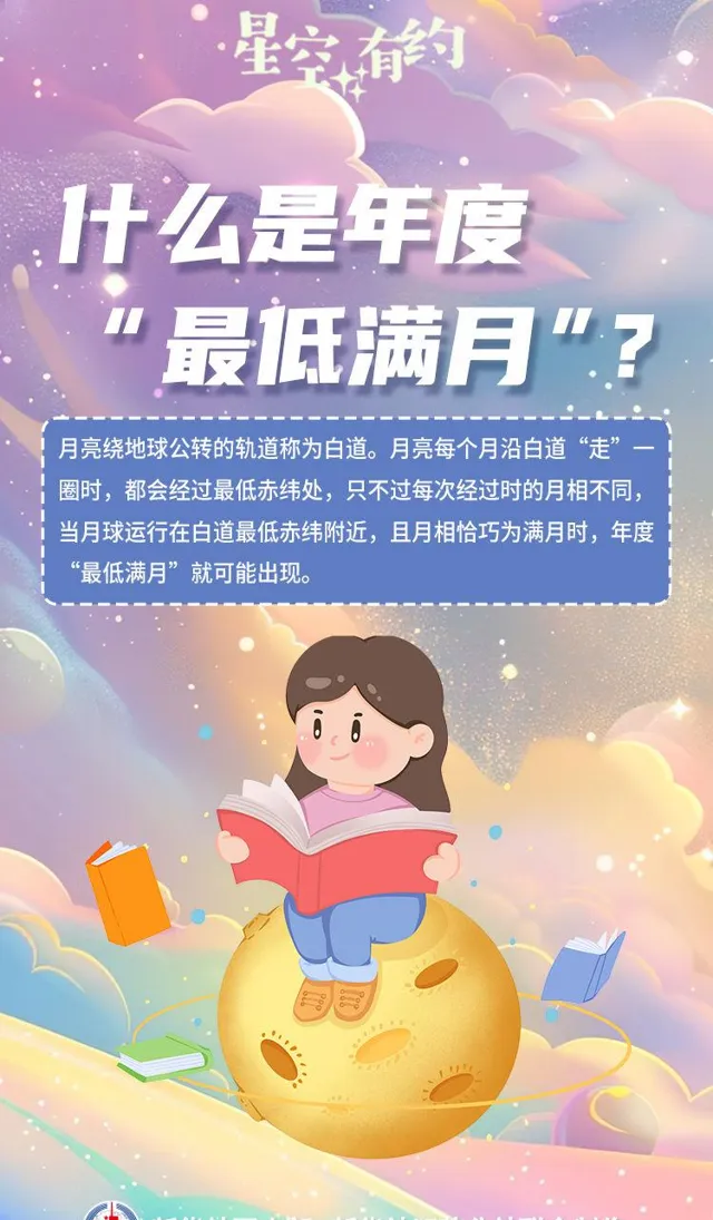 中國科學院紫金山天文台科普主管王科超介紹,月亮繞地球公轉的軌域稱為白道。每個月,月亮沿白道「走」一圈,其地心視赤緯隨之變化,這意味著它在天球上的位置會不斷發生改變。「類似於地球上的緯度,赤緯相當於標記天體在天空中位置的‘南北身份證’。月亮每月執行時都會經過最低赤緯處,只不過每次對應的月相各不相同,當月球執行在白道最低赤緯附近,且月相恰巧為滿月時,年度‘最低滿月’就可能出現。」