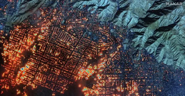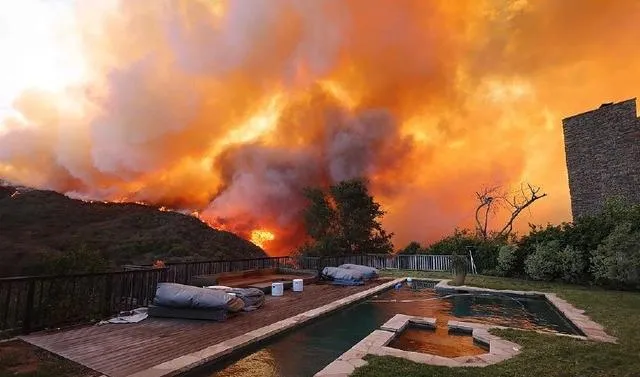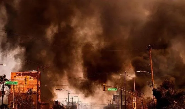 其成因是南加州內陸荒漠地帶地形開闊,植被稀少,形成了高壓區,而太平洋沿岸受海洋影響形成低壓區。在氣壓差的作用下,風從內陸荒漠吹向太平洋沿岸,從而形成了「聖安娜風」。它會顯著降低空氣濕度,加速植被的幹燥過程。例如,在這種風的作用下,原本含水率相對較高的植被會迅速失水變得幹燥易燃,而且它還能透過空氣對流等物理作用,推動火焰快速傳播和蔓延,讓火勢難以預測和控制。