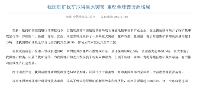 根據自然資源部和地質調查局的報告顯示,這一次發現的鋰礦資源,其規模之大、儲量之豐,遠遠超出了常規預期。
