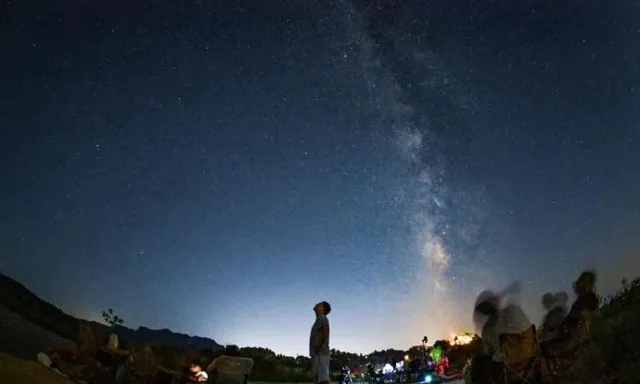 2024年8月12日,巴南區安瀾鎮五通村,市民一邊露營,一邊觀賞英仙座流星雨。記者 龍帆 攝/視覺重慶