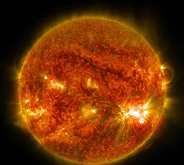 :這顆恒星的表面裂開了一個巨大的暗斑,足有 200 個地球並排那麽寬,周圍裹著新噴出的塵埃雲,活像人咳嗽時吐出的黑痰。