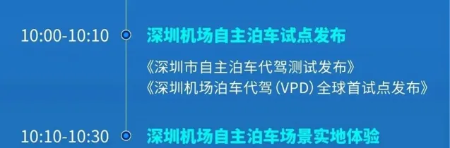 IT之家獲悉,會議將進行【深圳市自主泊車代駕測試釋出】、【 深圳機場泊車代駕(VPD)全球首試點釋出 】。